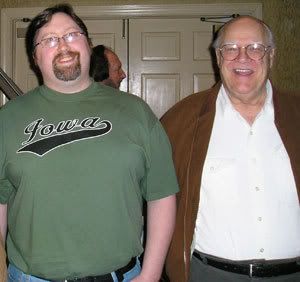 The flashback sequences, back to Eric’s wedding, were nice and sentimental without being desperately schmaltzy (if you’ve even been a part of a wedding, you know those gigs are a haven for spontaneous sentimentality), but the best bit was that we finally (if briefly) met Jake’s grandpa, whose general presence has been felt since the very first episode of “Jericho.” It was a nice way of bringing the series full circle, just in case it doesn’t manage to return next season. Of course, it was even nicer than Gramps was played by none other than David Huddleston, who you may know less by his name than by his previous roles: Kevin Arnold’s grandpa on “The Wonder Years,” and Jeffrey Lebowski in “The Big Lebowski.” And if you’re still not sure who I’m talking about, well, hell, here’s a picture of me standing next to him, taken at the 2007 Williamsburg Film Festival, in Williamsburg, VA: